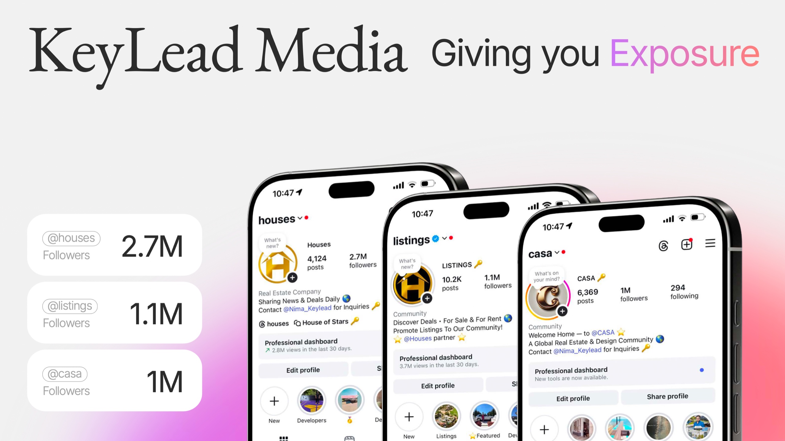 Keylead is the worlds largest real estate community on social media, millions of followers and millions in revenue.