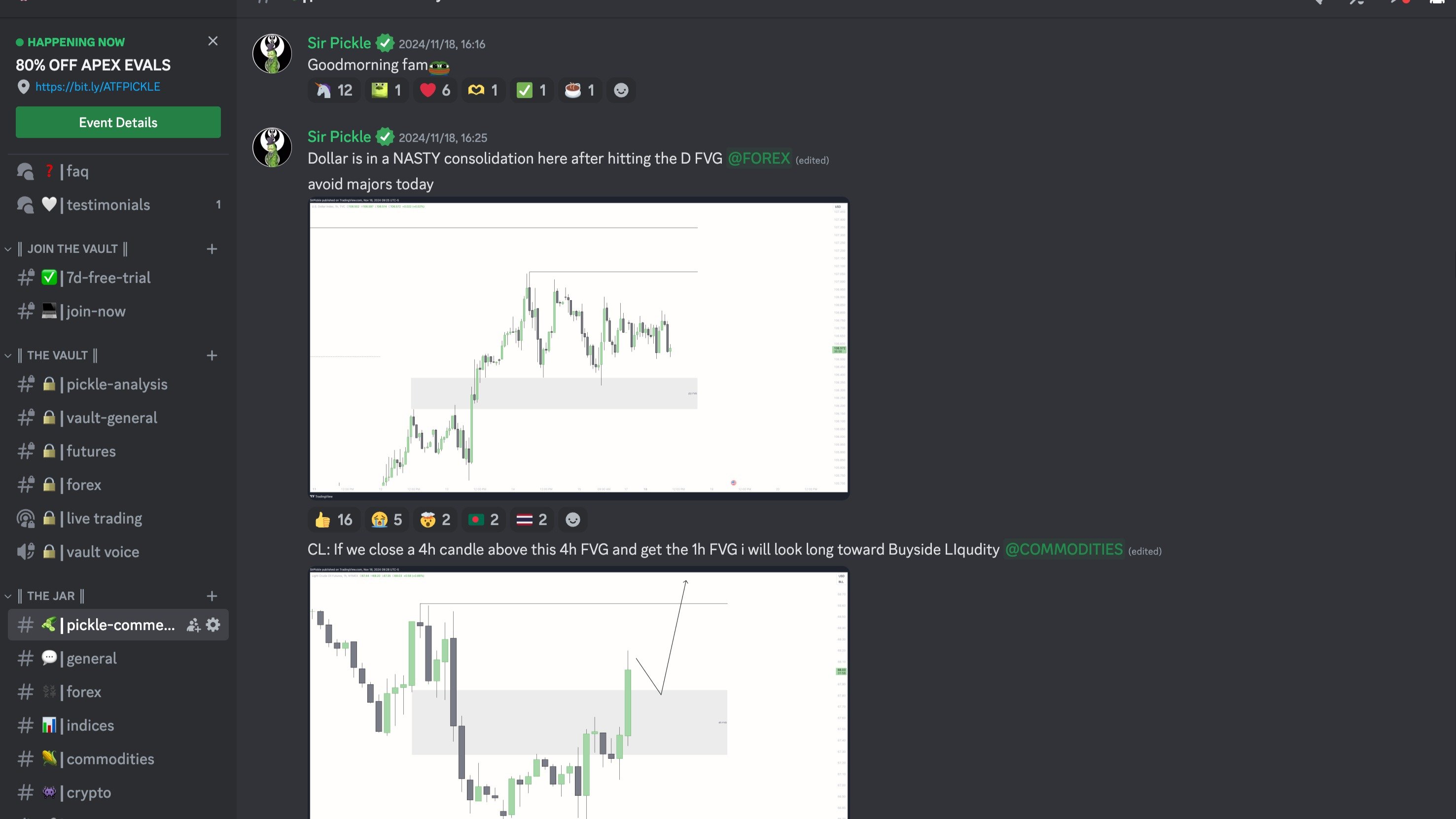 Join 19,000+ other traders in the official discord community of trading creator "SirPickle". Get access to daily trade analysis, live-trading, free-resources and 24/7 support.
