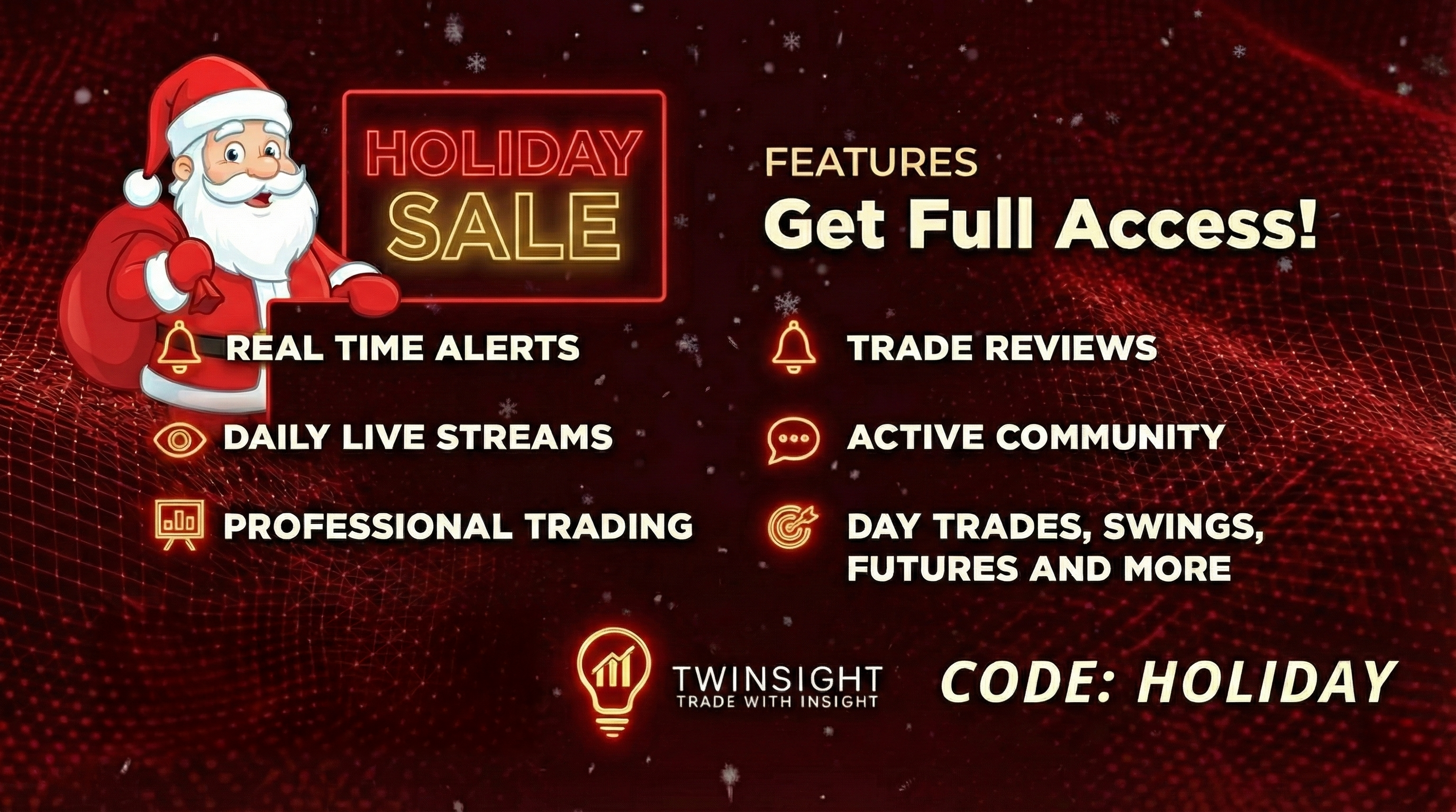 Unlock your potential using proven strategies, real-time support, and a thriving community... every resource you need to elevate your trading to the next level. Trade with real professionals including a 12 year veteran and 7 figure trader. Are you ready to trade with insight?